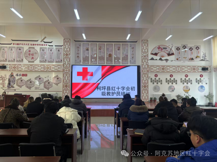 培训理论环节由柯坪县红十字会师资教师主讲,课程内容聚焦初级救护员必备知识体系,涵盖心肺复苏(CPR)操作原理、自动体外除颤器(AED)使用规范、创伤止血包扎与骨折固定技巧、常见急症应急处置等关键内容。教师结合真实案例,用通俗易懂的语言拆解专业知识点,通过图文演示、要点强调等方式,帮助参训人员快速理解救护原则与操作逻辑,夯实理论基础,为后续实操训练筑牢根基。