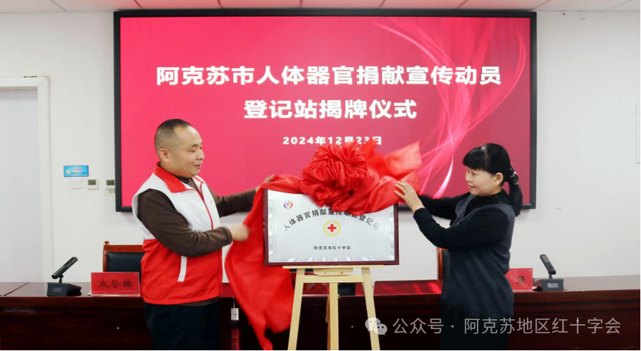 阿克苏市首个人体器官捐献宣传登记站在阿克苏市人民医院挂牌,这是阿克苏市卫生健康委员会、阿克苏市红十字会一直以来高度重视和大力发展红十字事业的体现,它标志着阿克苏市在推动人体器官捐献事业发展方面取得了积极进展。作为红十字志愿者,广大医疗工作者要聚焦红十字会主责主业,在“三救”“三献”等工作中进一步突出生命教育,倡导“生命之约·大爱传递”、“救在身边”等社会新风尚,进一步推动阿克苏市人体器官捐献事业高质量发展。