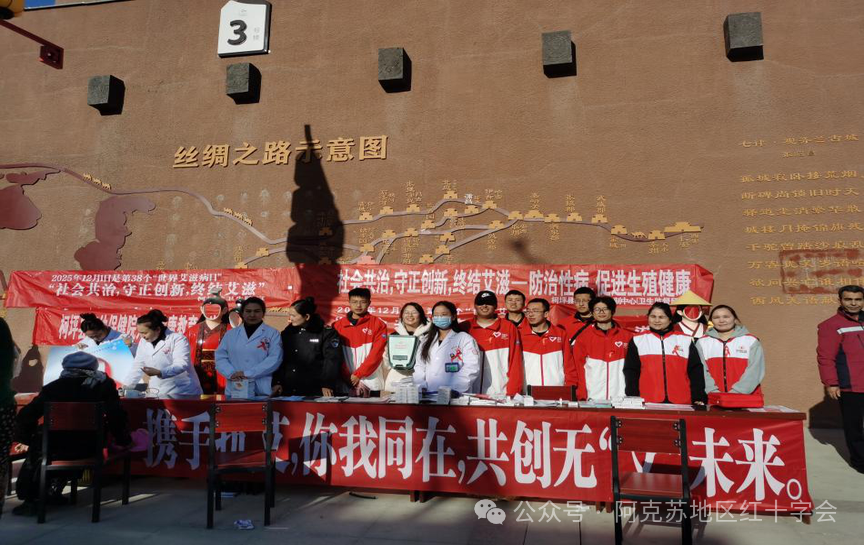 12月1日是第38个“世界艾滋病日”,为切实筑牢艾滋病防治防线,凝聚社会共治合力,2025年11月30日,柯坪县红十字会联合县疾病预防控制中心、团委、柯坪镇医院、柯坪县医院、卫生监督所等多家单位,共同开展“社会共治,守正创新,终结艾滋”主题宣传服务活动,以多部门协同之力向群众传递科学防艾理念。