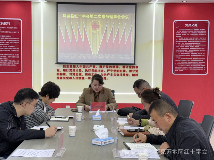 首先,由拜城县红十字会常务副会长阿孜古丽·买买提组织大家学习习近平总书记关于慈善领域重要论述,推进慈善事业高质量发展。阐明慈善事业的价值立场、目标任务、动力源泉、路径方法等,为推进新时代新征程慈善事业高质量发展指明了前进方向?;嵋榍康鳎羁贪盐招率贝焓质乱捣⒄沟男滦问菩乱?,坚持党的领导,依法履职尽责,充分发挥好红十字会在人道领域的桥梁纽带作用。同时,参会人员围绕今天的会议议题,进行了深入交流与讨论,凝聚共识,形成工作决议,为规范推进和效能提升红十字工作奠定坚实基础。