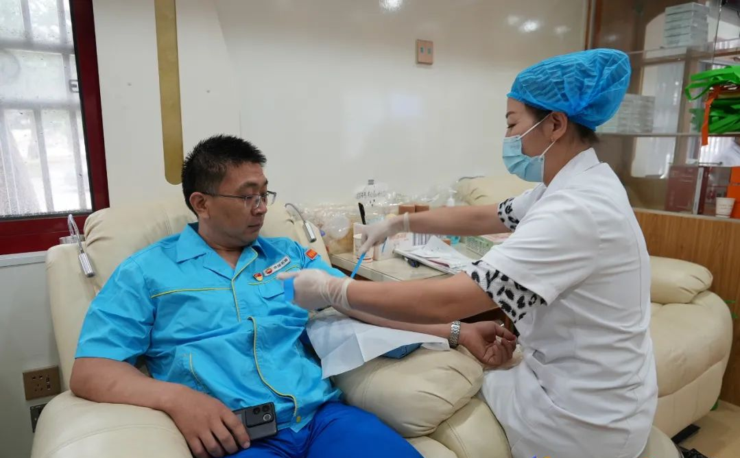 中国石油阿勒泰销售公司员工刘杰于2008年开始献血,16年里累计献血量达5100毫升,本次他献血400毫升。刘杰表示:我每年坚持献血两次,能用微薄之力帮助他人挽救生命我感到无上光荣。
