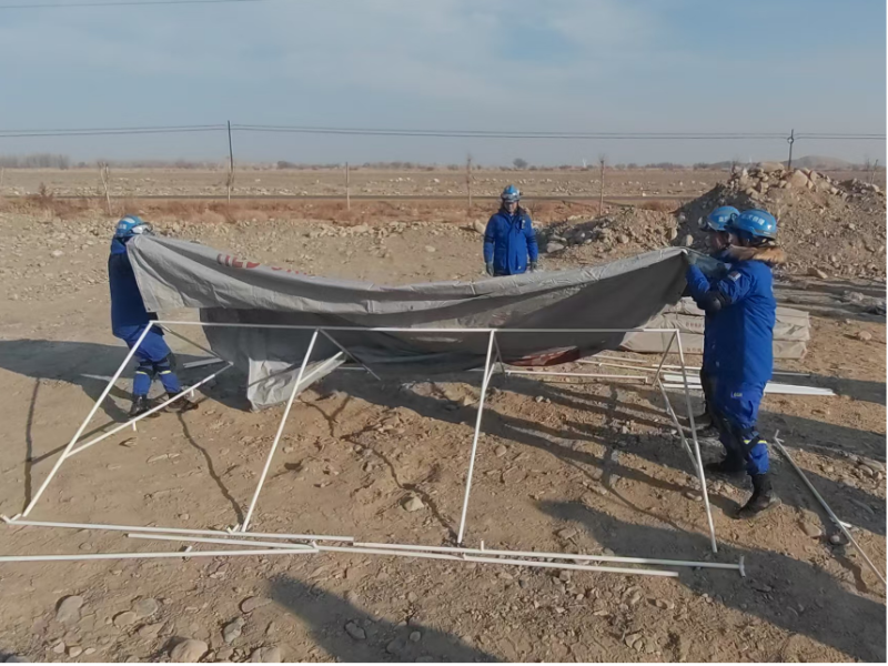 演练现场,各个科目紧张有序展开。在营地建设区,队员们协同配合,快速完成救灾帐篷的搭建,短短时间内,集指挥、医疗、物资等功能于一体的救援大本营拔地而起。一旁的医疗救护点上,救援人员正熟练地对模拟伤员进行止血、包扎、固定和搬运,动作精准而迅速。