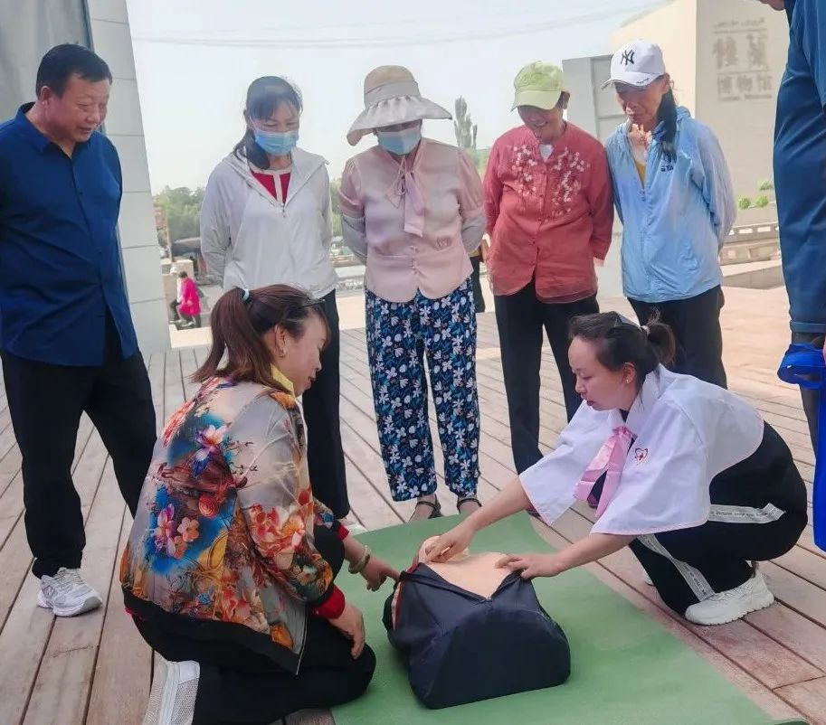 为提高群众应急救护能力,自治区人民医院若羌医院南丁格尔志愿服务队的志愿者还通过模拟演示,向群众详细讲解了心肺复苏(CPR)的具体操作流程,并邀请干部群众现场操作练习。
