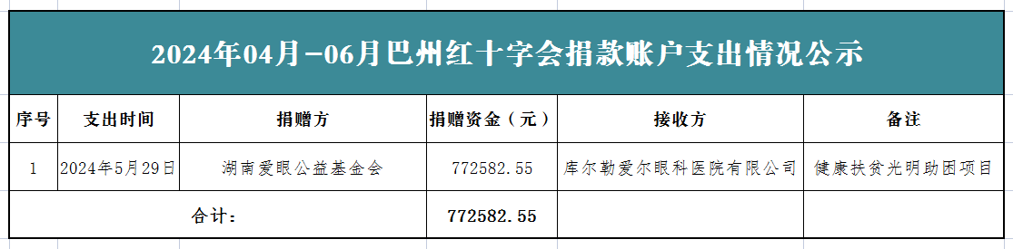 2024年04月-06月巴州红十字会捐款账户支出情况公示(第二季度)