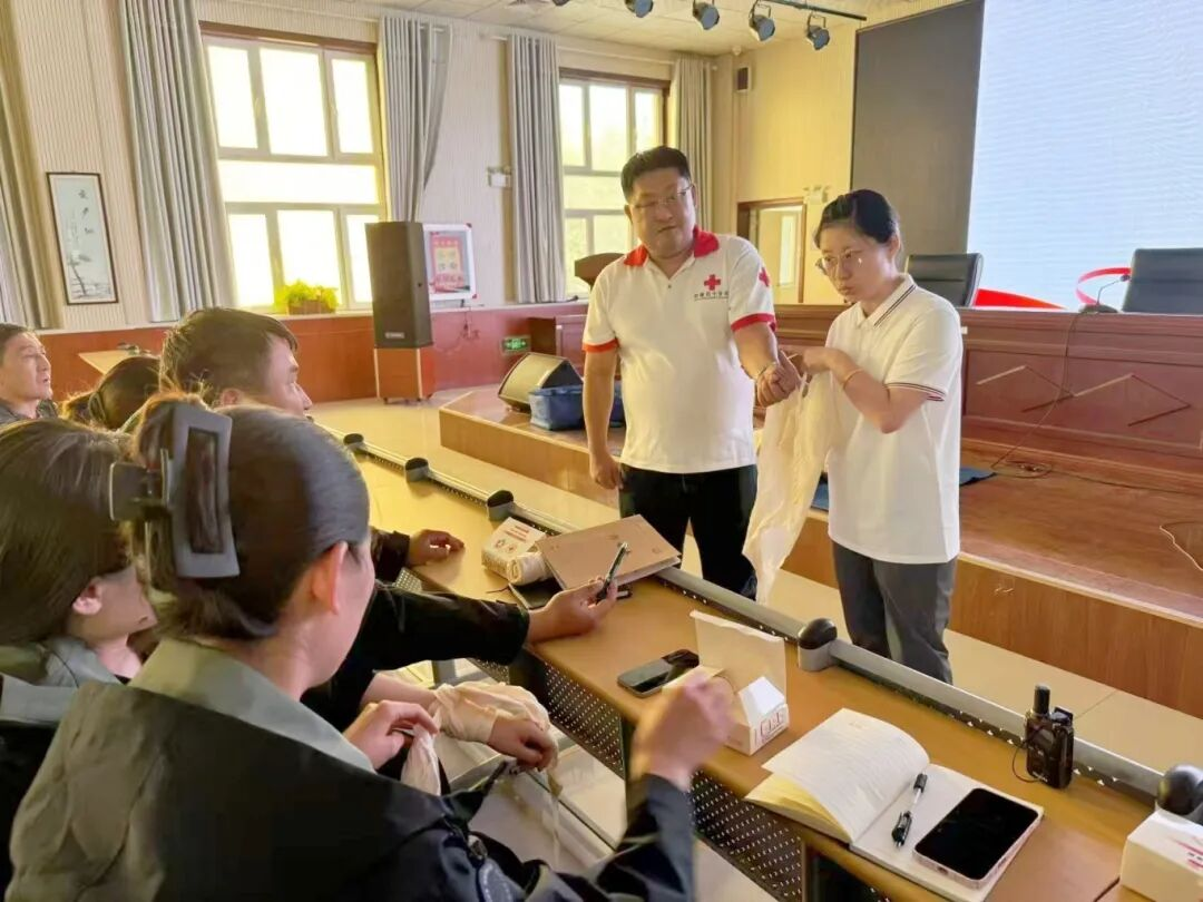 培训中,蔡永新结合校园场景,讲解了地震与火灾时应如何组织学生避险。通过理论讲解与实操演示相结合的方式,让教官熟悉流程和动作要领。校医室医生系统讲解创伤止血、包扎、骨折固定等基础救护知识,重点示范心肺复苏的按压位置、力度频率及人工呼吸操作要点。教官们认真记录关键步骤,分组进行模拟实操,讲师逐一纠正动作细节,确保每位学员都能准确掌握操作规范。