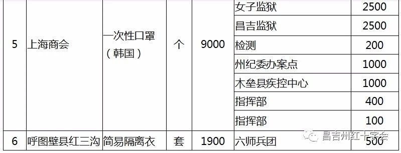 现将昌吉州新冠肺炎疫情防控工作指挥部接受社会捐赠物资第一批分配情况公示如下: