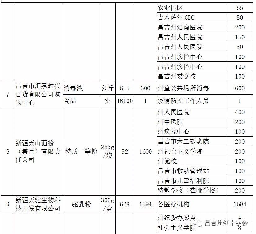 现将昌吉州新冠肺炎疫情防控工作指挥部接受社会捐赠物资第一批分配情况公示如下: