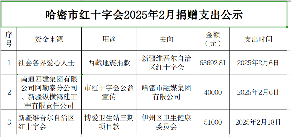 哈密市红十字会接受社会捐赠资金 支出情况公示 (2025年2月1日---2月28日)