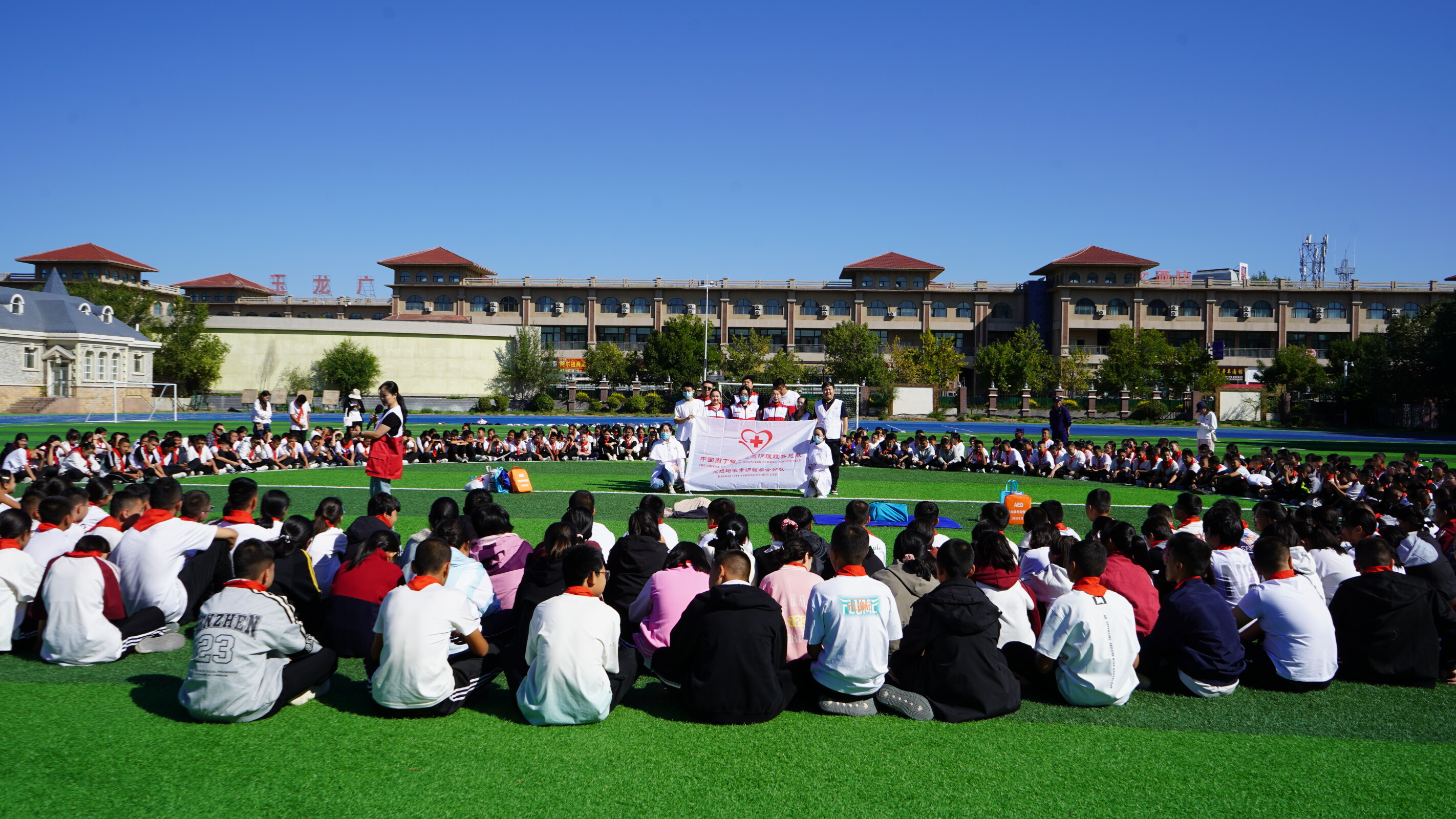 9月19日自治区人民医院克拉玛依医院(市中心医院)、独山子人民医院分别完成了克拉玛依职业技术学院克拉玛依校区和独山子校区3450余名新生的“应急救护进校园”培训任务,2025年此项工作圆满收官。