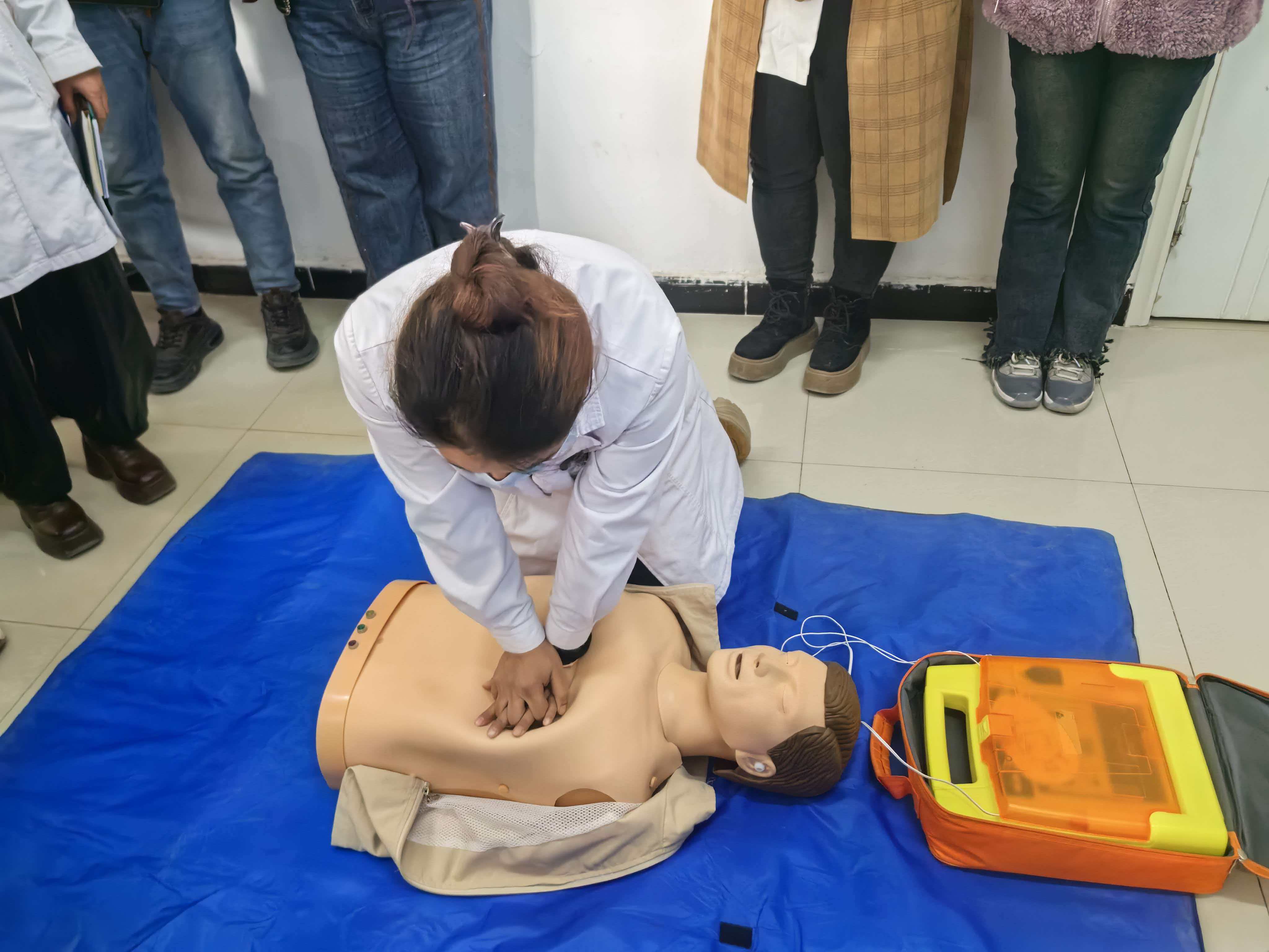 在波斯喀木乡卫生院的培训现场,县红十字会的应急救护师资采用“集中理论辅导+分组实操演练”的方式进行教学。课程紧密围绕基层常见突发急症,重点讲解了心肺复苏(CPR)操作要领、自动体外除颤仪(AED)的使用方法、气道异物梗阻急救(海姆立克急救法)以及创伤止血包扎技术。