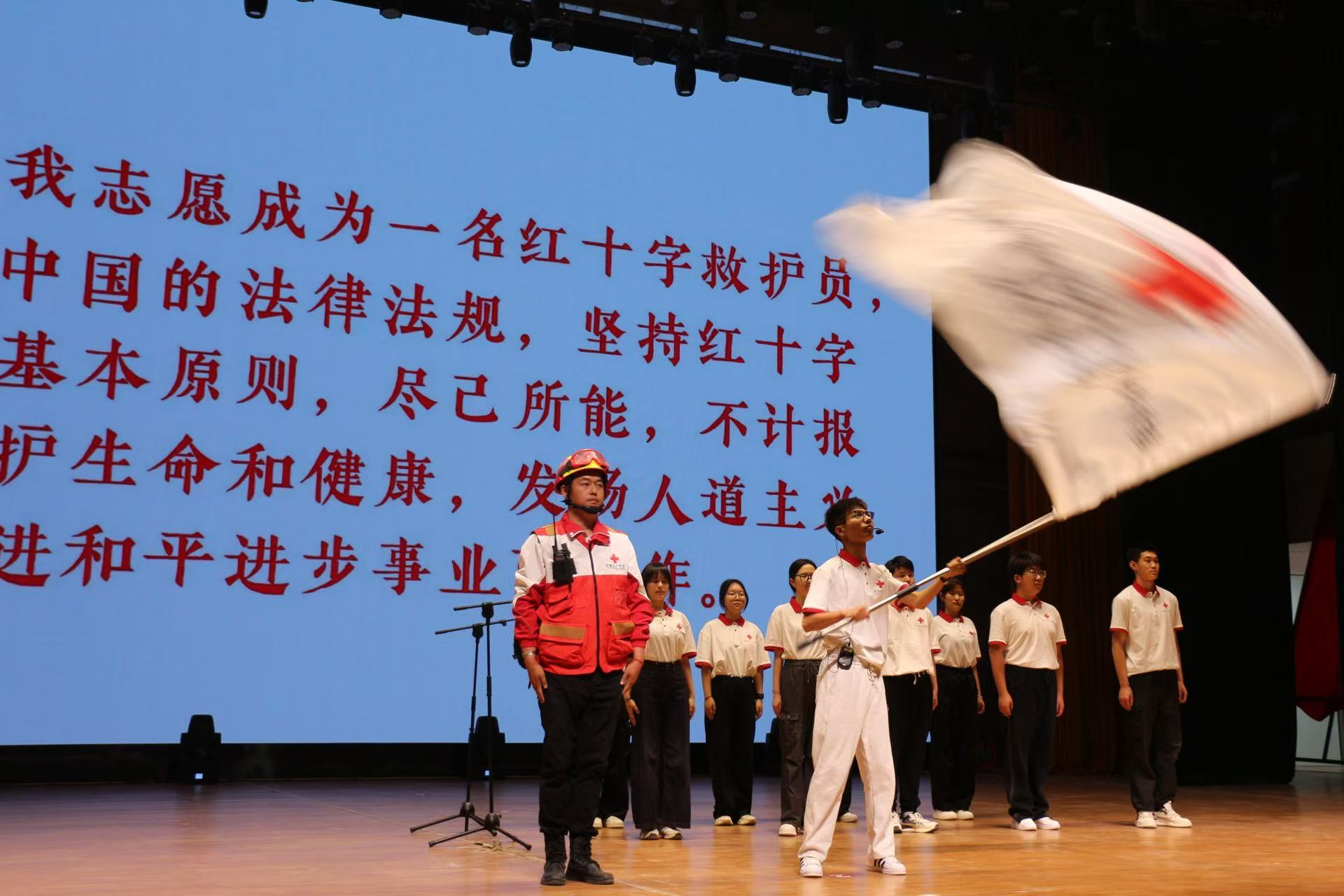 2025年5月7日,喀什地区红十字会在喀什大学礼堂举行红十字应急救援队授旗仪式。