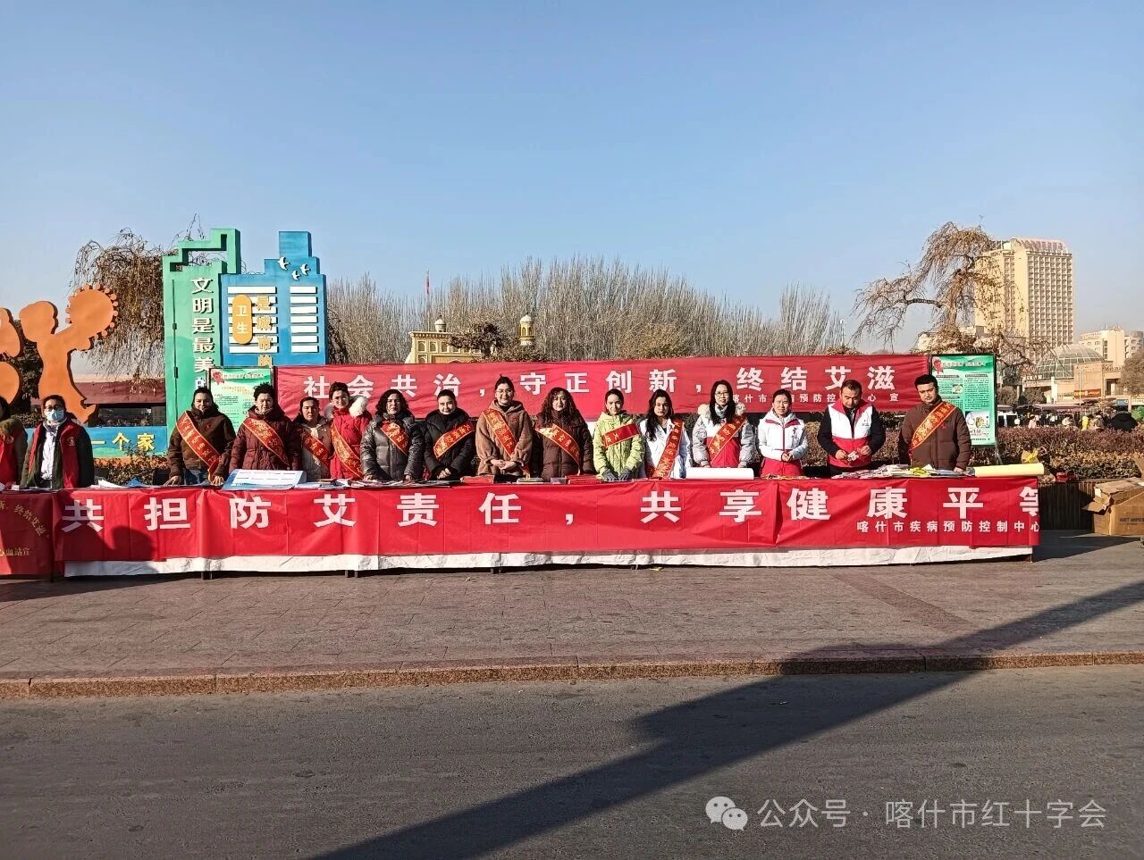 12月1日,我们迎来第38个“世界艾滋病日”。为切实提升全市群众防艾抗艾意识,筑牢健康安全防线,喀什市红十字会携手市疾病预防控制中心(卫生监督所),在艾提尕尔广场开展以“社会共治,守正创新,终结艾滋”为主题的宣传活动,用专业科普与暖心关怀传递“人道、博爱、奉献”的红十字精神。