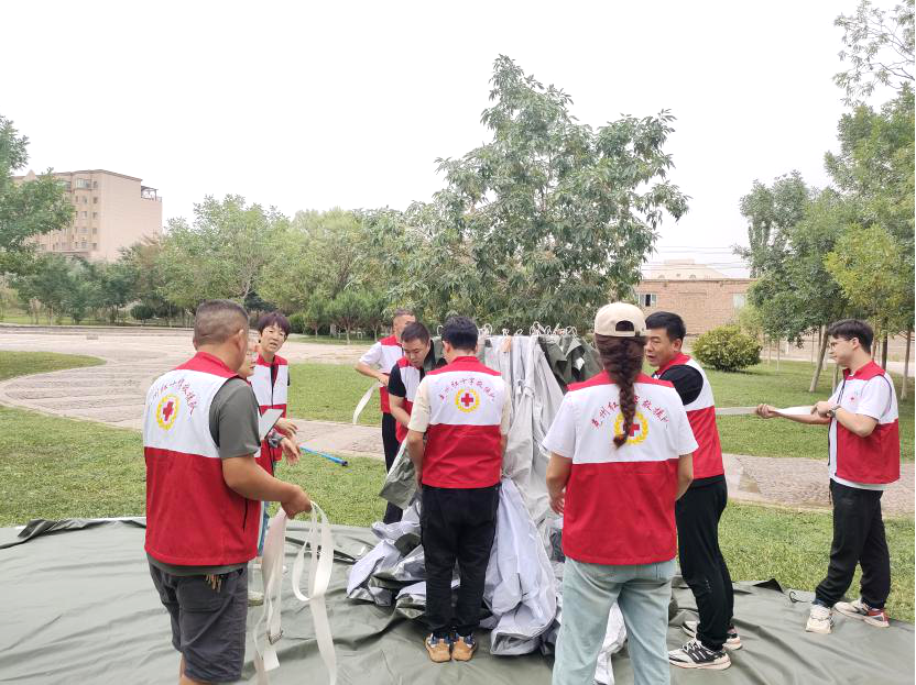 克州红十字会党组副书记、副会长王冬梅同志表示,搭帐篷是安置灾区居民所必需的救灾措施,通过此次培训,希望队员能够认真学习,发生自然灾害时从容应对,学以致用。