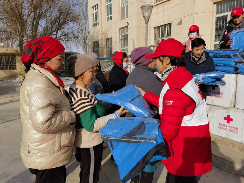 2024年1月24日,克州红十字会前往受灾较重的阿合奇县库兰萨日克乡阿克特克提尔村、别迭里村和吉勒得斯村为受灾群众发放510件冲锋衣,鼓励群众坚定信心,为灾区群众提供温暖保障。