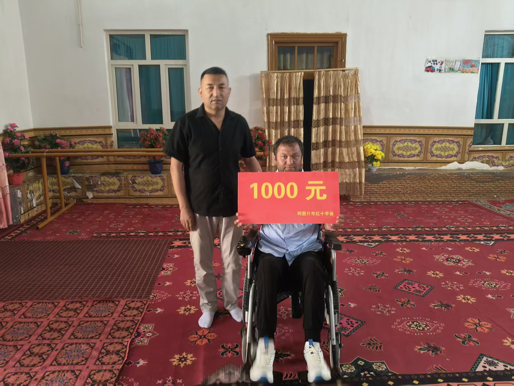 吾尔卡什·努热拉因在阿图什市光伏电站工作时发生意外事故,腰部被光伏板压倒,导致下半身瘫痪,多次住院治疗花费巨大,家庭经济陷入了极度困难的境地,日常生活和医疗救治都面临着巨大压力。阿图什市红十字会在得知这一情况后,迅速启动人道救助程序,组织工作人员对其家庭情况进行了详细调查核实,确认其符合人道救助条件。