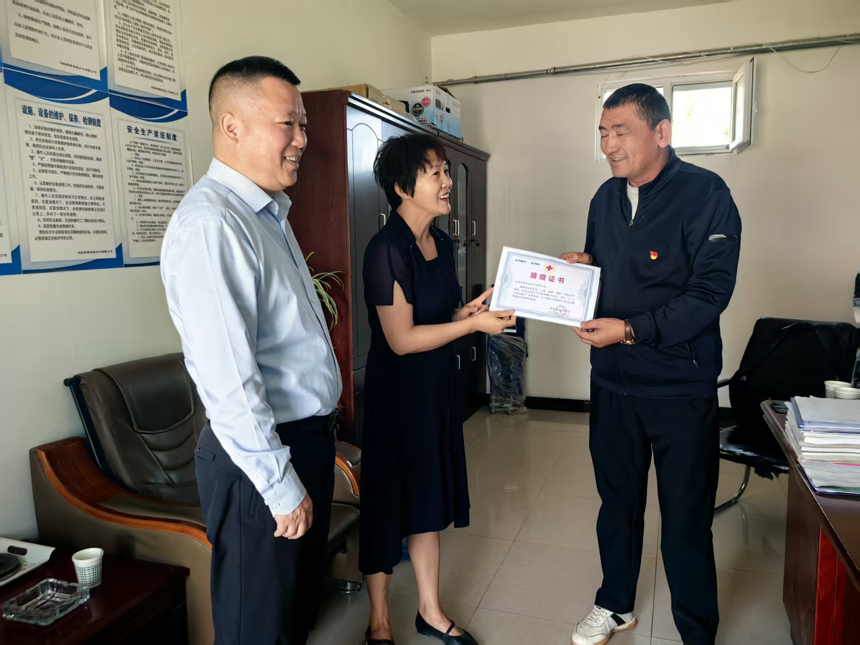 首先,调研组一行前往乌恰县工业园区为在2025年“5·8人道公益日”众筹活动中表现突出的爱心捐赠企业代表乌恰县绿松进出口有限公司进行走访,与企业负责人深入交流,感谢企业积极履行社会责任,认真听取了企业对公益项目开展及合作机制的建议,并为其颁发捐赠证书。