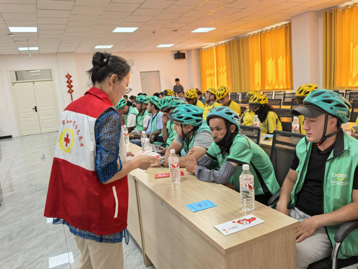 为进一步弘扬“人道、博爱、奉献”的红十字精神,传播“自愿无偿、高尚利他”的人体器官捐献理念 ,7月3日,阿图什市红十字会在光明街道玛纳斯社区对快递、外卖员工开展了“矢志人道 ·携手同行”为主题的人体器官捐献宣传月活动,活动取得良好效果,得到居民广泛关注与积极响应。