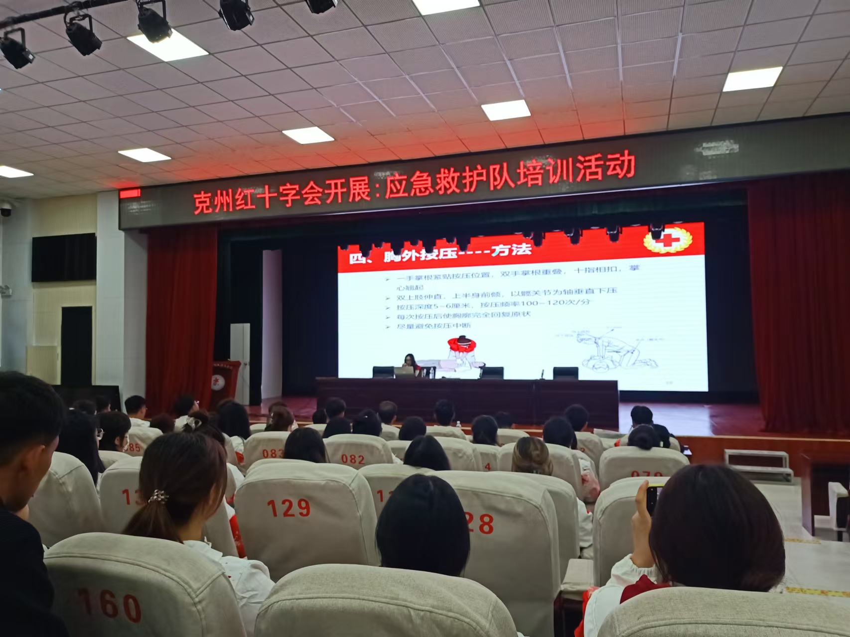 首先,克州红十字会应急救护培训师资介绍了红十字运动知识和三救三献等工作职能,让学生感悟“人道、博爱、奉献”的红十字精神。