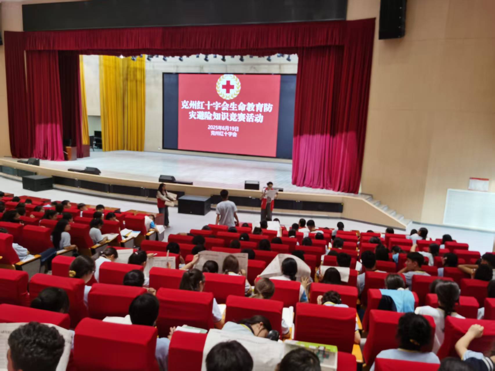 为引导青少年学生加强红十字生命教育理念,增强防灾避险意识,提升自救互救能力,筑牢校园安全防线。6月19日,克州红十字会走进克州二中,组织开展了一场红十字生命教育防灾避险知识竞赛活动,为学生们带来了一堂生动实用的生命安全教育课。高一年级600余名师生参加此次活动。