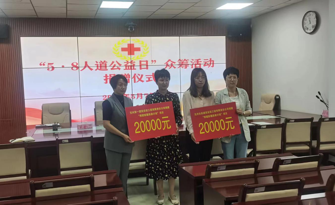 5月7日上午,在第77个“世界红十字日”来临之际,克州红十字会携手爱心企业举行了“5·8人道公益日”线下捐赠仪式。克州第一建筑安装工程有限责任公司、克州永新建筑安装工程有限责任公司各捐赠了2万元爱心善款,希望用于“博爱新疆急救计划”项目,助力为人员密集区域设置AED应急救护一体机,为心脏骤?;颊哒【让平鹚姆种?。