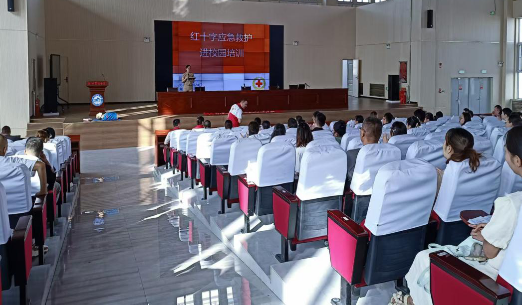 为进一步加强学校生命健康安全教育,强化师生的安全防范意识,增强师生自救互救能力,自8月24日起,克州红十字会联合克州人民医院、南丁格尔志愿服务队对州直7所中、高等学??褂本然そT靶卸嫫舳E嘌抵饕孕姆胃此?、 AED 的使用以及气道梗阻、创伤包扎等方面展开授课。日前已对2所学校进行了培训,参训师生达1133名。