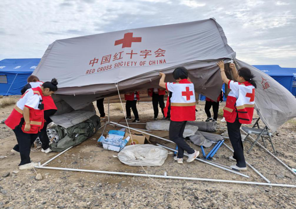 此次,克州红十字赈济救援队演练科目是受灾群众安置,在灾害现场安全地带,搭建受灾群众安置区、救灾物资接收发放,开展灾情及需求评估、接收和发放救灾物资、安置受灾群众等,必要时为受灾群众和救援人员进行应急供餐。