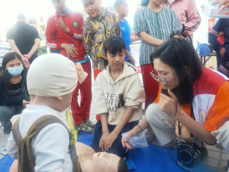 活动现场,克州红十字会培训师资们用通俗易懂的语言,生动活泼的教学方式,重点讲解了心肺复苏技能、呼吸道异物梗阻的海姆立克急救法等,现场手把手指导群众实操演练,让他们边做边学,取得了较好的教学效果。不少周围市民驻足观看,得到了现场群众的阵阵喝彩,纷纷主动加入学习的行列。