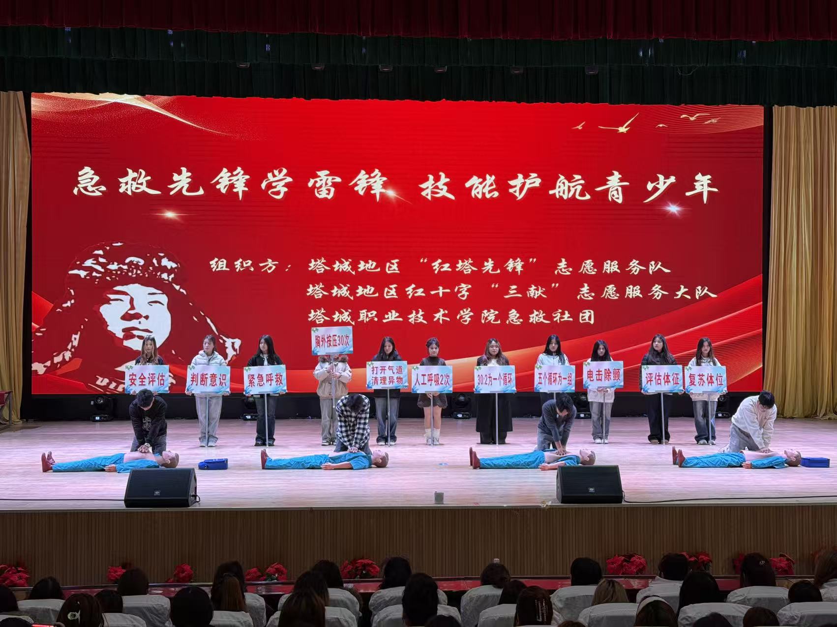 为深入开展3月雷锋月志愿服务,大力弘扬人道、博爱、奉献的红十字精神与奉献、友爱、互助、进步的志愿精神,塔城地区红十字会联合塔城职业技术学院,面向广大青年学生开展应急救护知识普及进高校主题志愿服务活动,以专业救护技能守护青春生命,用实际行动诠释别样的雷锋精神。
