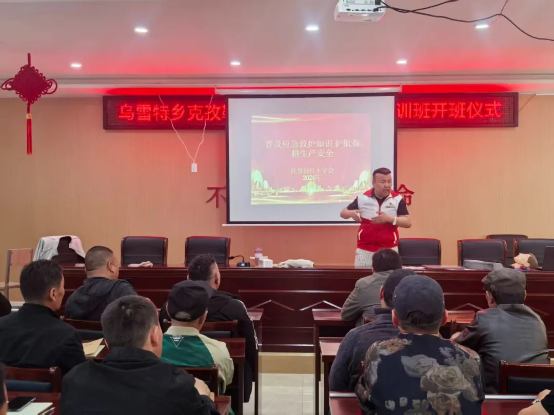 托里县红十字会则紧扣春耕生产关键节点,联合托里县技工学校,先后在托里县技工学校、乌雪特乡克孜勒克亚村开展春耕前应急救护知识专题培训,助力护航春耕生产安全,此次培训覆盖两地群众及学员共计100余人。培训紧密贴合农村生产生活实际需求,由应急救护师资围绕心肺复苏、AED使用、创伤止血包扎、气道异物梗阻急救等核心内容进行系统授课。应急救护师资用接地气的语言讲解应急处置关键要点,现场演示规范操作流程,并手把手指导参训人员上手练习,帮助大家快速掌握实用急救技能,有效提升基层群众应对突发状况的自救互救能力,为春耕生产平稳有序开展筑牢安全保障。