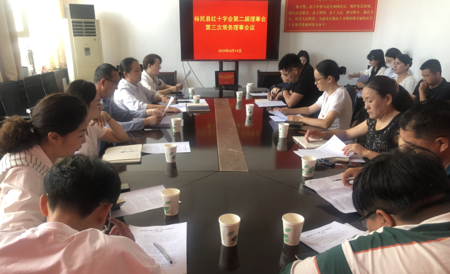 2024年6月14日,裕民县红十字会第二届理事会第三次常务理事会议在县人大办三楼会议室召开。本次会议由第二届理事会常务理事、第一届监事会监事、各乡镇分管领导、纪委监委派驻组领导各1名,共计27名,县红十字会全体干部(列席)参会,县红十字会常务副会长蒋素蓉主持会议。首先,传达学习了习近平总书记关于群团工作的重要指示精神。