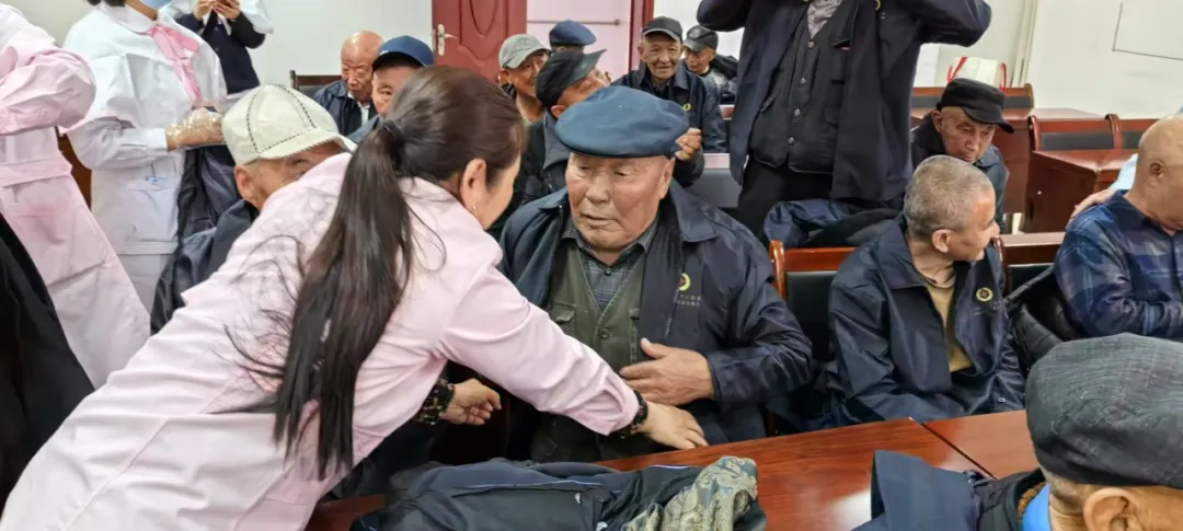 活动中为敬老院老人送去棉被、夹克衫等物资50余份。南丁格尔志愿服务团队为全体老人开展了免费义诊,宣传红十字会救助、应急救援、防灾减灾等相关知识,并给全体老人免费提供听诊、测量血压血糖等服务。