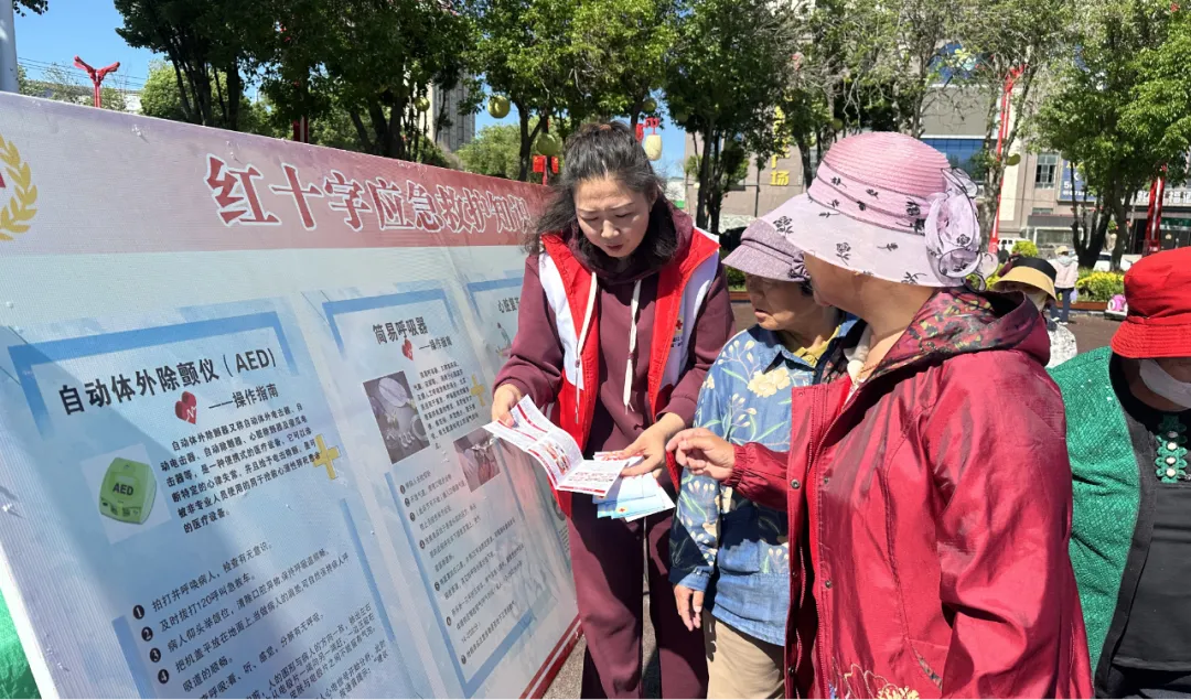 现场开展“5·8人道公益日”互联网众筹活动和群众舞蹈表演,通过悬挂宣传标语、发放宣传手册、开展义诊服务、宣传人道救助等形式,为群众讲解应急救护、健康防病、防灾避险等知识,引导群众了解和掌握相关急救知识,提高应急救护、防灾避险知识的普及率。