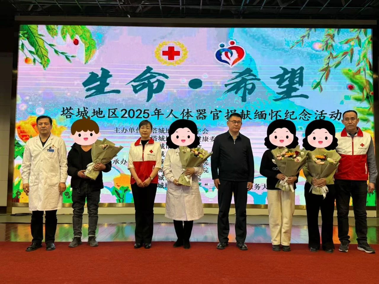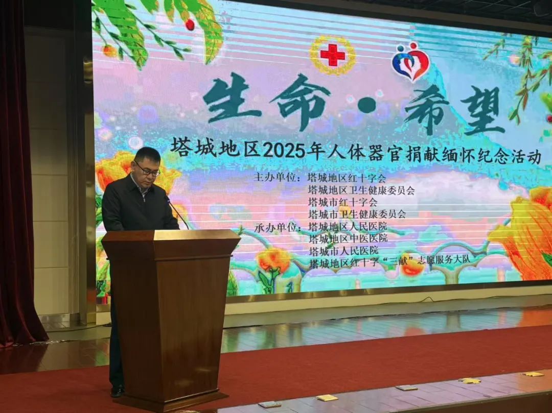 3月26日,塔城地、市红十字会联合卫健委开展“生命·希望”人体器官捐献缅怀纪念活动。地区红十字会党组书记、副会长刘艳艳,地区卫健委党组成员、副主任,地区疾控局局长巴合达提·努尔木卡西出席活动并讲话。红十字会干部、卫生系统医护人员、遗体和人体器官捐献者家属、红十字“三献”志愿服务大队志愿者参加活动。