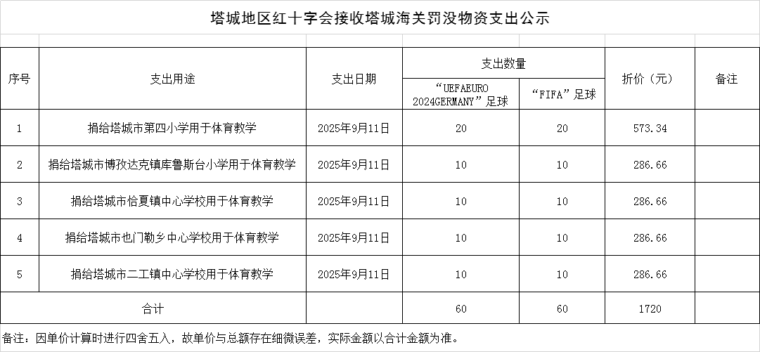塔城地区红十字会接收塔城海关罚没物资支出公示