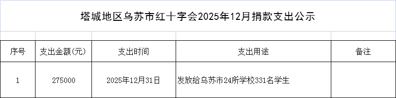 塔城地区乌苏市红十字会2025年12月捐款支出公示