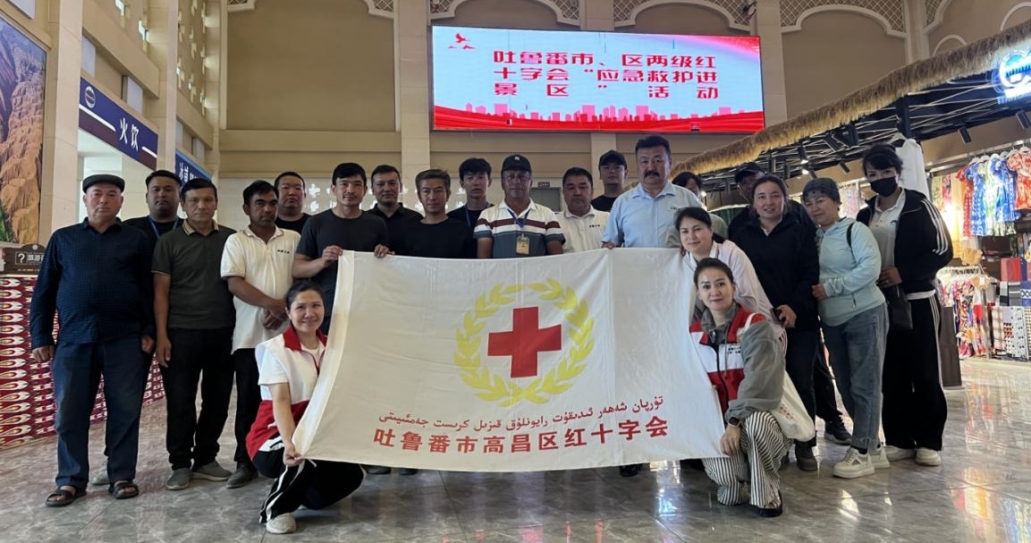 当天下午,红十字会干部和志愿者携手走进葡萄沟景区,在景区大厅等场所开展应急救护普及培训活动,吸引了景区工作人员、安全员及部分游客等50余人参与,为保障游客在景区内生命安全与健康筑牢防线。