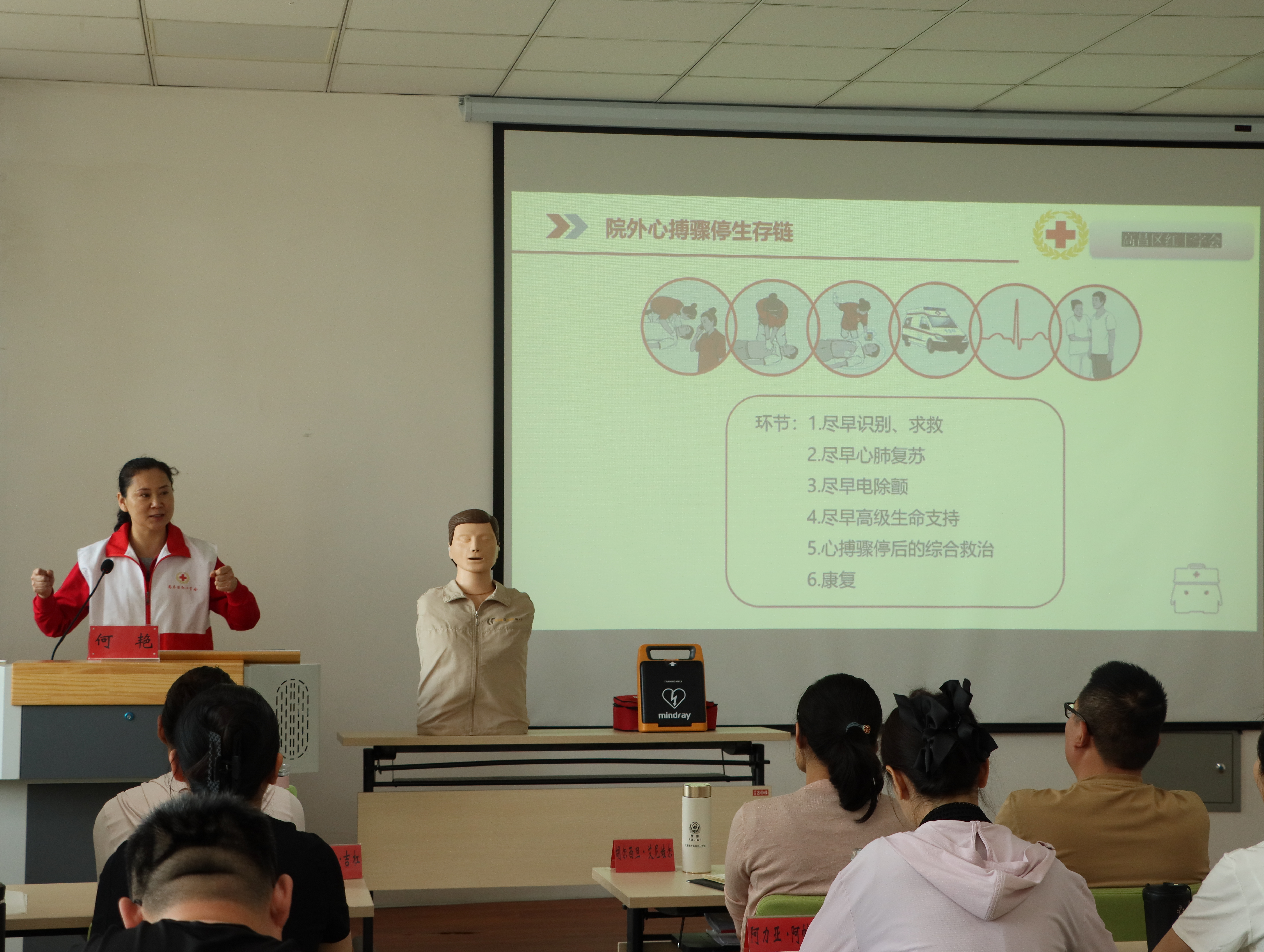 培训活动还精心准备、分发了“5·8人道公益日”众筹倡议、海报等100余份,通报了全区39个点位61台AED的具体投放情况。