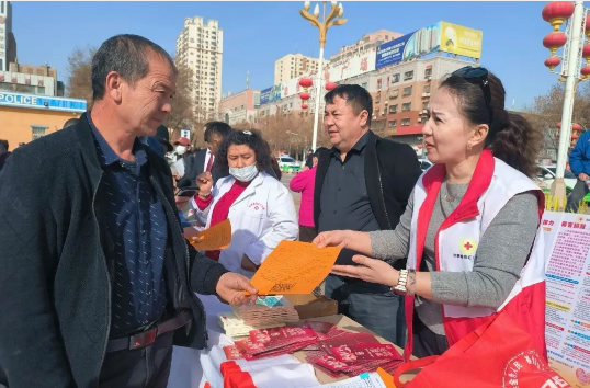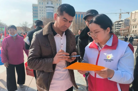 志愿者向群众普及无偿献血、造血干细胞捐献、人体器官捐献相关知识