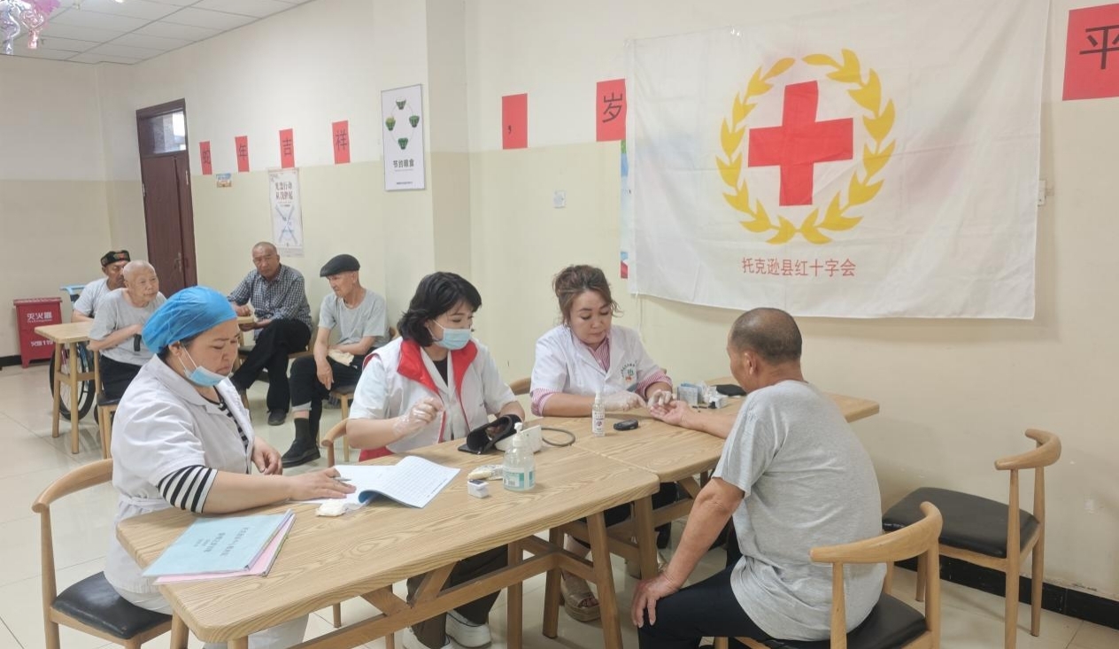 2025年“红十字博爱周”活动期间,县红十字会围绕“矢志人道,携手同行”活动主题,组织义诊小团队走进辖区敬老院,为30余名老人开展健康义诊服务活动,传递社会对老年群体的关爱。