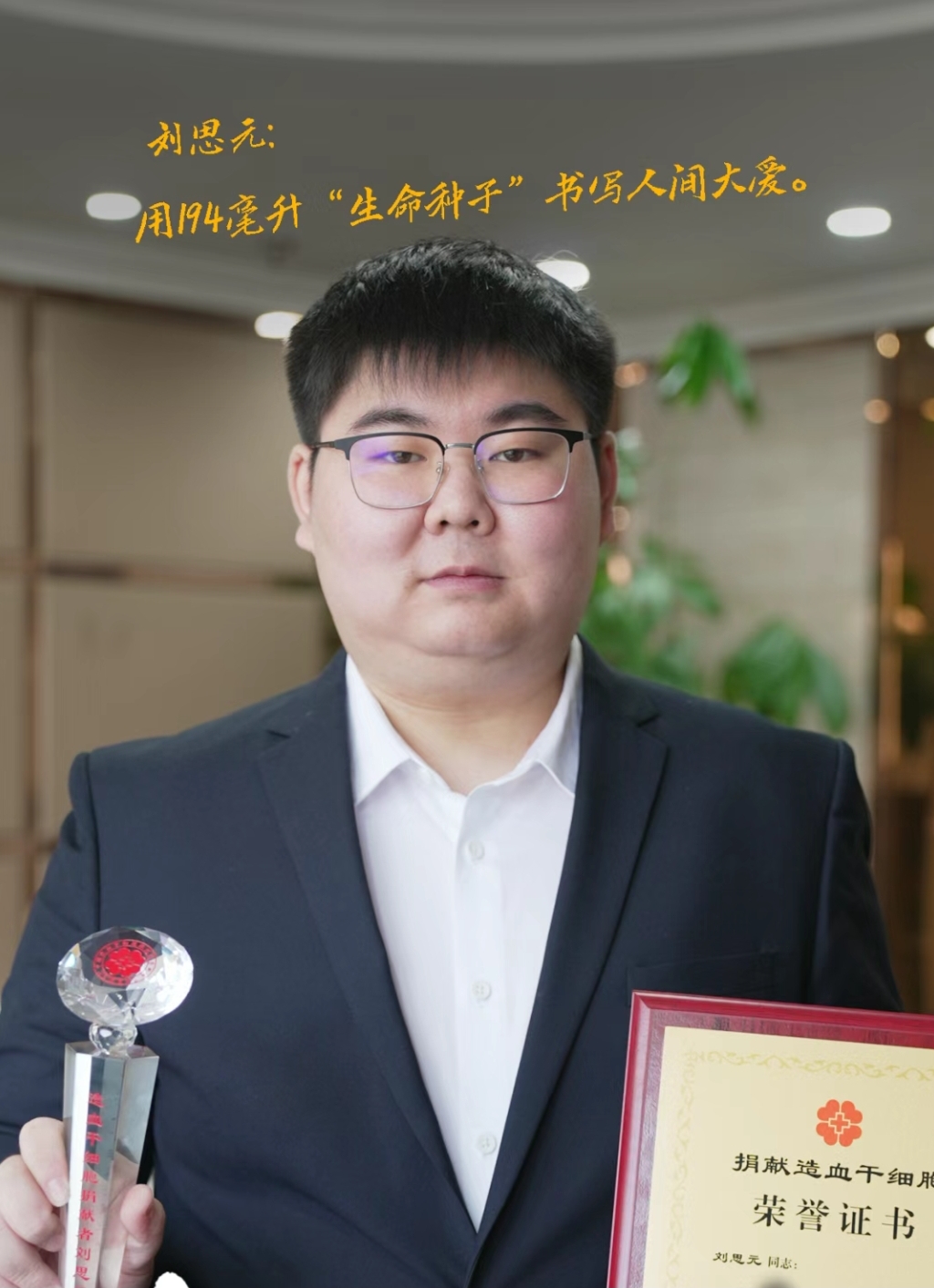 刚上大一时的刘思元与几位大学好友相约前往献血站献血。当针头刺入静脉时,宣传栏上一行“十万分之一的奇迹”标语撞入他的视线。