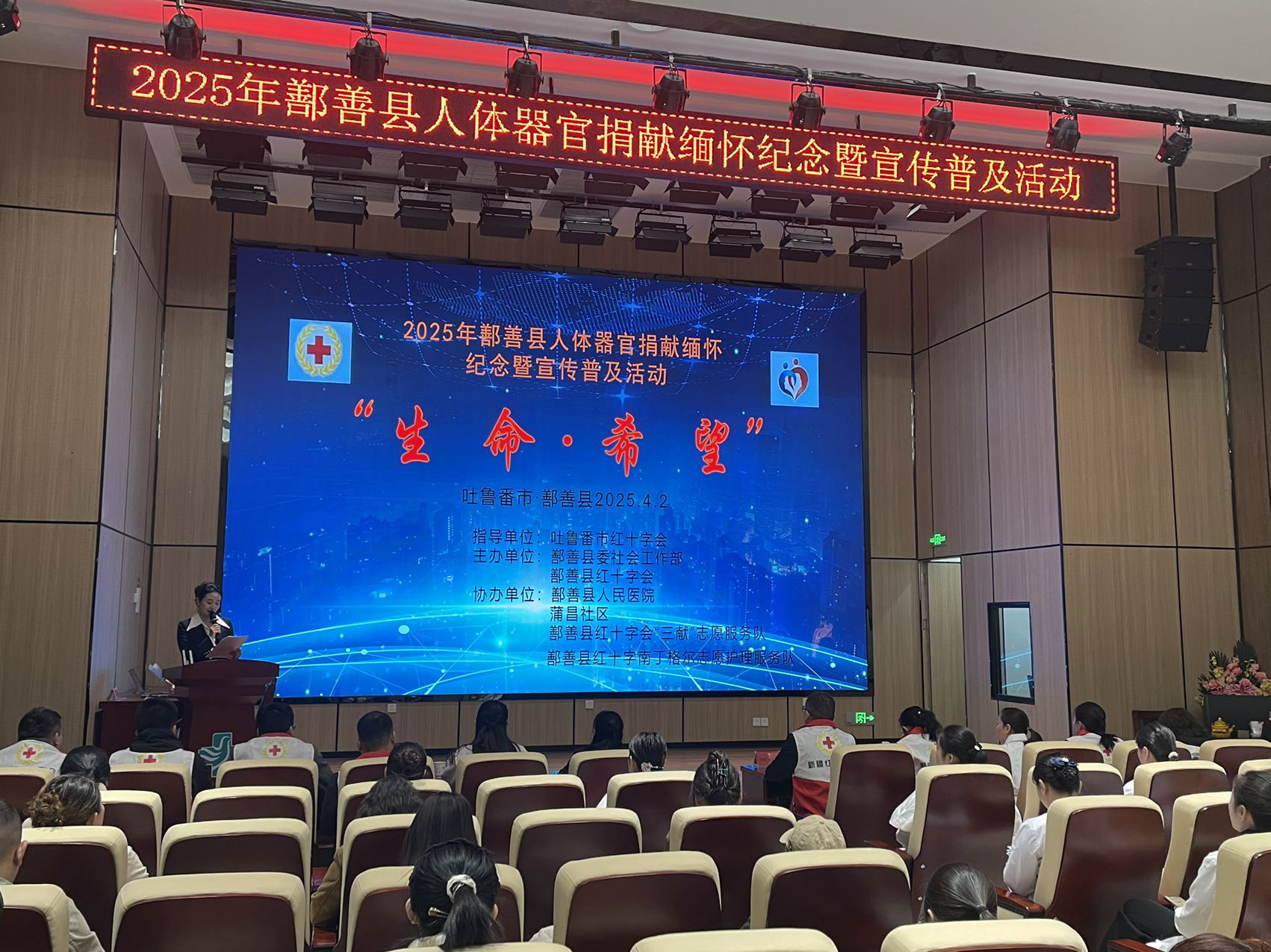 2025年4月2日,鄯善县红十字会联合县委社会工作部、卫健委、县人民医院和部分乡镇、社区以及红十字志愿服务队、人体器官捐献者家属、志愿者代表,开展了以“生命·希望”为主题的人体器官捐献缅怀纪念活动。