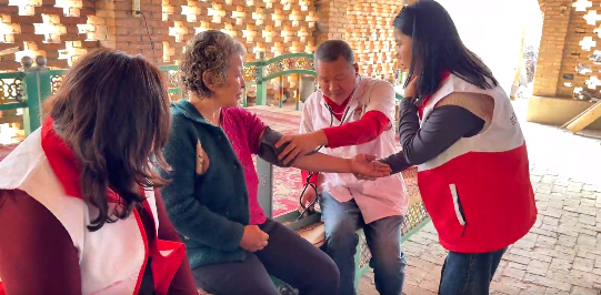 吐鲁番市红十字会志愿者服务大队开展“情暖中秋 爱在重阳”主题活动,志愿者入户走访老人,细心测量血压,送上慰问品与节日祝福。用贴心关怀传递温暖,让老人们感受浓浓的关爱与温情。