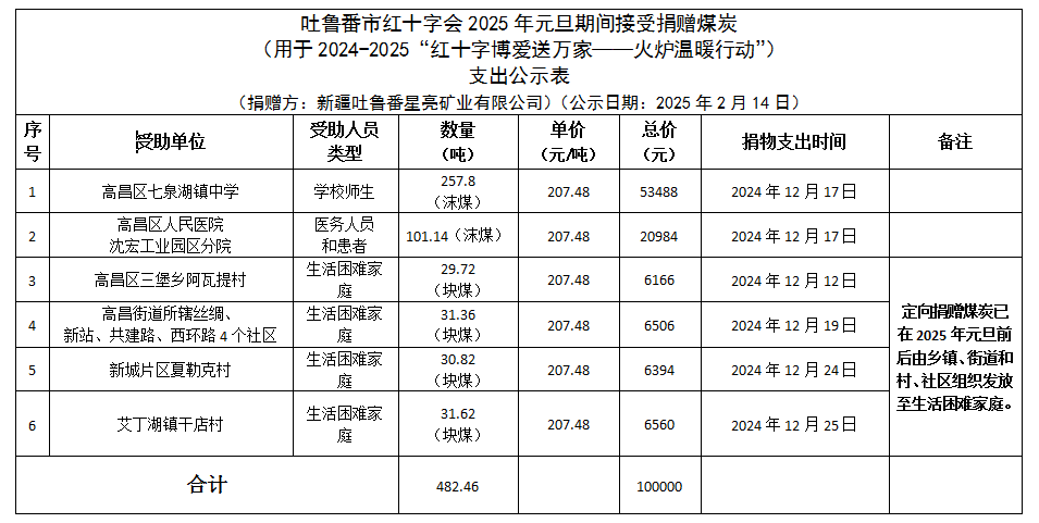 附件:吐鲁番市红十字会2025年元旦期间接受捐赠煤炭支出公示表