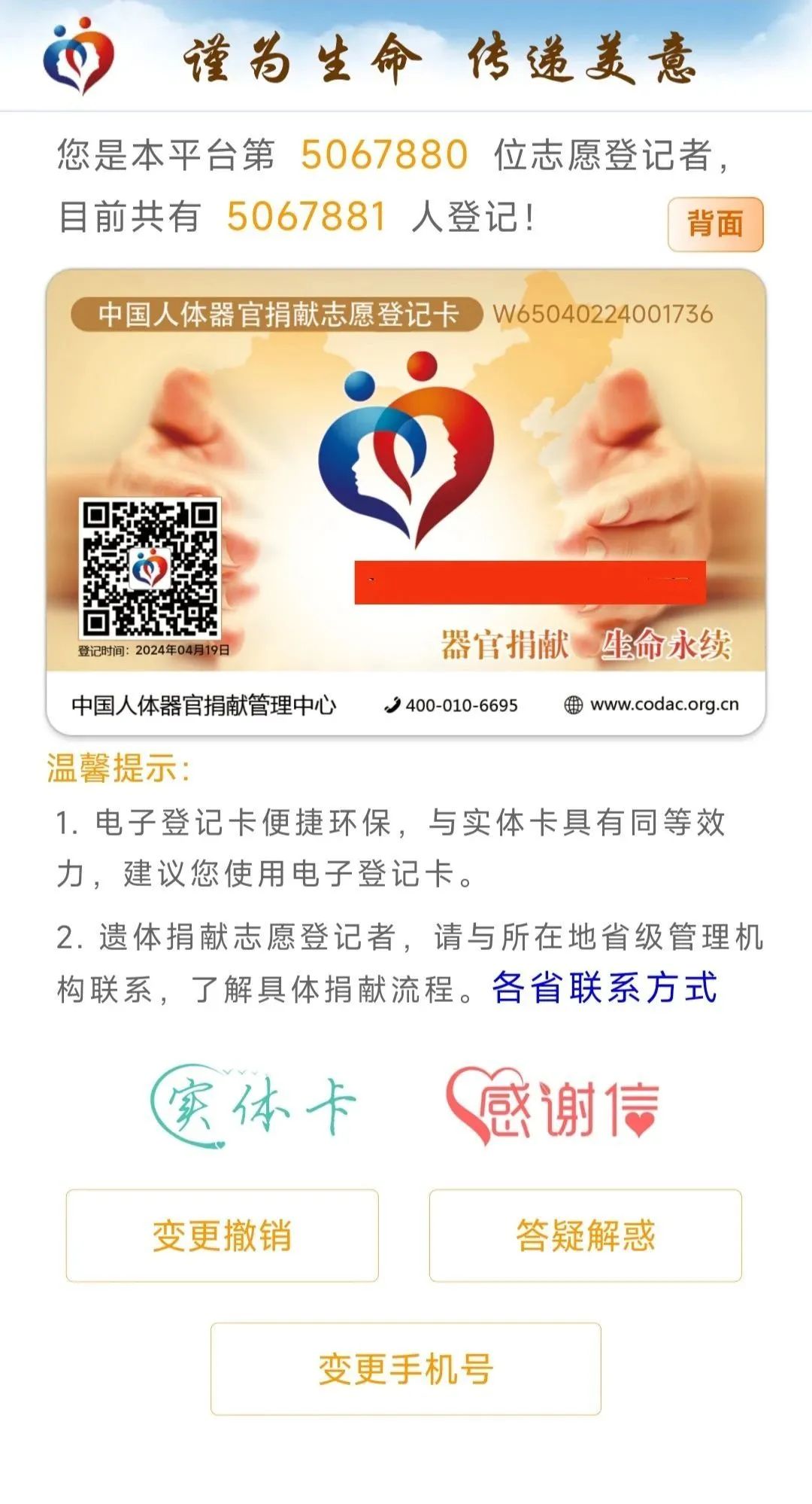 如果您已年满18周岁,愿意支持人体器官捐献事业,可以登记成为器官捐献志愿者。登记方式如下: