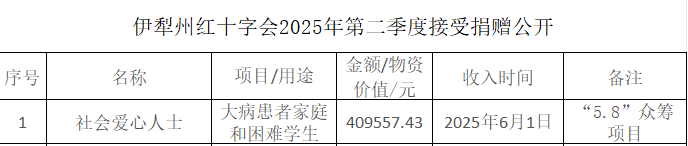 伊犁州红十字会2025年第二季度接受捐赠公开