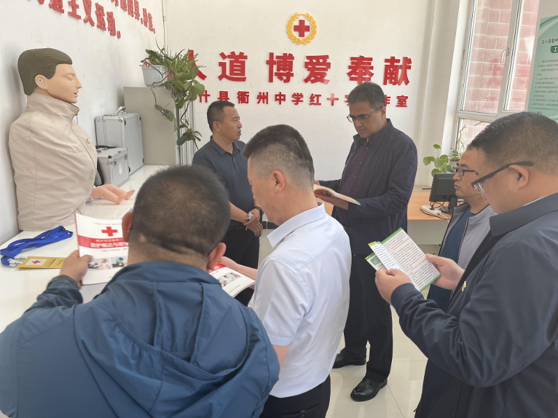 5月15日至16日,在阿克苏地区,阿不都热依木·玉苏甫一行听取阿克苏地区、阿克苏市、乌什县、温宿县工作汇报后,面对面与相关学校、红十字志愿服务队工作人员和“三献”志愿者开展座谈交流,深入了解他们的想法和做法,认真听取他们的意见建议。调研组一行先后前往阿克苏地区红十字会临时物资储备点、龙谭湖红十字文化主题公园和乌什县衢州中学进行实地察看,详细了解红十字会基层组织建设、会员发展和志愿服务以及开展以红十字文化宣传、缅怀纪念广场使用、人道救助、博爱校医室建设、应急救护培训等情况。实地察看了解校医室AED设备(应急救护一体机)设置使用情况,与工作人员和师生们亲切交流,现场观摩救护培训和日常演练情况。