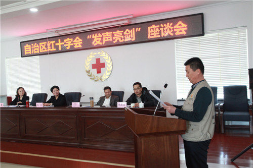 5月3日,为深入贯彻落实自治区党委决策部署,深入学习吾布力喀斯木·买吐送同志先进事迹、《致维吾尔族同胞觉醒书》及自治区各级各界发声亮剑文章,引导广大红十字会干部积极发声亮剑,用行动证明维护祖国统一、社会稳定、民族团结的坚定决心,凝聚起促进社会稳定和长治久安总目标实现的强大合力,自治区红十字会开展了以“三爱三反”(热爱党、热爱祖国、热爱中华民族大家庭,反分裂、反极端、反暴力)为主题的发声亮?;疃?。自治区红十字会党组书记、常务副会长隋霞及机关各部室、直属事业单位全体干部职工、志愿者参加会议?;嵋橛勺灾吻焓只岬匙槌稍?、副厅级检查员、监察专员麦芳主持,