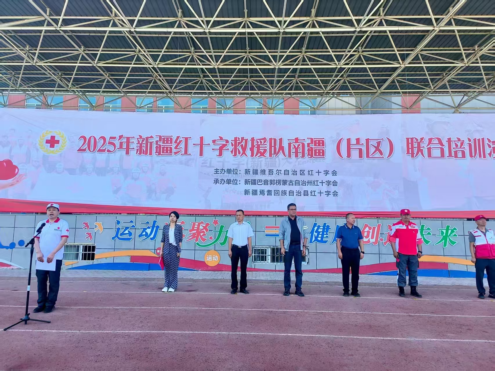 新疆红十字会党组成员、副会长阿都热依木·玉苏甫,巴州红十字会党组书记、常务副会长陈培锋,以及焉耆县委副书记、县长马雁斌等领导出席了活动。来自中国红十字大众卫生救援新疆分队、中国红十字医疗救援队新疆分队、新疆红十字搜救队,以及南疆(片区)七个地州的赈济救援队等12支队伍,共计87名队员参与了此次演练。